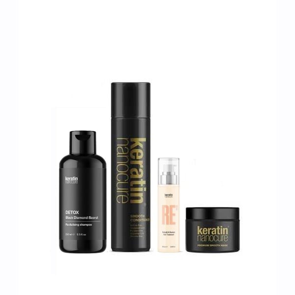 Keratin Nanocure® Detox Black Diamond Secret Revitalising Shampoo 250ml & Smooth Conditioner 500ml & Smooth Mask 250ml & RE12 Hair Treatment 100ml