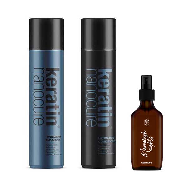 Το Keratin Nanocure Argan Oil ενυδατώνει τα μαλλιά σας δημιουργώντας μια προστατευτική επίστρωση γύρω απο την τρίχα.